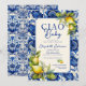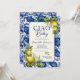 Fira den blivande mamman med dessa vintage italienska blåa plattor och citroner inspirerade stiliga inbjudningar. Denna Vintage Blå plattor och citroner Baby Shower Inbjudan kan anpassas med dina egna detaljer. Designen har en vintage blå plattor bakgrund med realistisk citrongrafik.