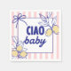 Ciao, BABY! Fira din sommarbabydusch i stil med vår roligt, rosa, vismisk la dolce vita Medelhavsininspirerad babydusch engångsservetter.