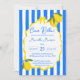 Ciao Bella Dolce vita Lemons blue rand italiensk inbjudningskort för möhippan-mall, omedelbar nedladdning, redigerbar mall för citruscitroner blue rand inbjudningskort för möhippan, sommartid inbjudningskort för möhippa, vintage Italienska inbjudningskort för möhippa, vågigt gräns funky inbjudningskort för möhippa
