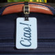 Ciao! Perfekt bagagetagg för den resande världen med en allvarlig fodral av vandrande lust