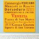 Landmärken för Venedig i vintage typografi, svart text på orangens bakgrund med röd accent. Ett underbart tillägg till din dekoration, som ger hem den underbara stämningen på Vencies gator.