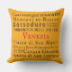 Landmärken för Venedig i vintage typografi, svart text på orange med röd accent. Baksidan av kudden, en dramatisk vintage bild av en traditionell venetisk mask, röd på orangen. Hämta Venezia till ditt hem!