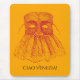 Dramatisk bild av en traditionell venetiansk mask i rött på orangens bakgrund, färg i Venedigs flagga. Lägg till Venedig till ditt skrivbord!