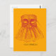Dramatisk vintage bild av en traditionell venetiansk mask. Röd på orangen, färg på flagga Venedig. Venezia med vem som helst!