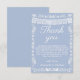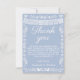 This elegant Cielito Lindo baby shower thank you card features delicate white papel picado banner details and ornate floral borders on a soft dusty blue background. The graceful script headline paired with a heartfelt appreciation message makes it a beautiful way to thank guests for celebrating your baby shower.