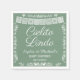 Elegant Sage Green baby shower napkins featuring a delicate white papel picado banner and ornamental floral border. Personalized with names and event date, these napkins are perfect for a Cielito Lindo or Mexican-inspired baby shower theme.