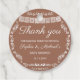 This round Cielito Lindo baby shower thank you tag features delicate white papel picado bunting and ornate floral borders on a Terracotta background. The elegant script “Thank You” paired with personalized names and event date makes it a beautiful finishing touch for your baby shower favors.