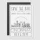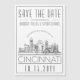 Ett unikt bröllop Magnetic Spara-date-inbjudan till ett giftermål som tar ställe i den vackra staden Cincinnati i Ohio. Inbjudan innehåller en stiliserad illustration av stadens unika skylt med namn under. Din bröllopsdag följer detta i ett matchande öppet infogat stil. På andra sidan inbjudan finns ett djupt grått färg som kompletterar utseendet och känslan. Alla enskilda inslag på inbjudan-kortet är olåsta så du kan ändra alla nödvändiga detaljer, t.ex. teckenstorlekar, stilar och mycket mer genom att använda anpassningsfunktionen. Du kan till och med lägga till ett foto av den framtida bruden och trimningen på den motsatta sidan med ett svartvitt filter för att matcha framsidan av kortet i inbjudan. Spelar ingen roll du väljer, kom ihåg att roligt är kreativ.