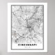 High Resolution Karta of Cincinnati, Ohio, Förenade Stater.