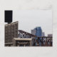 Vägmärken, en järnvägsbro och skyskrapor i Cincinnati, Ohio
