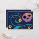 En rolig Cinco De Mayo Fiesta-fest Invitation med en förtjusande lila dödskalle och blomster rankor i midnatt blå, turkos, lila och gul. Kan anpassas med dina fest detaljer.