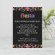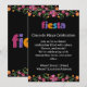 Get ready to celebrate in style with this vibrant Cinco de Mayo party invitation! Featuring a stunning colorful floral border with traditional Mexican-inspired elements, the design pops beautifully against a sleek black background. The playful "fiesta" typography sets a festive tone for your event.