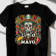 Här är en festlig och färgstark Cinco de Mayo firande-design och en djärv Cinco de Mayo T-shirt-design med en fektiv skalle, sombrero och roligt Mexikanska inslag! 🎉 🌮