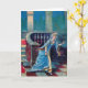En vintageillustration från barns bok som visar Cinderella som rusar ut ur bollen på midnatt och att förlora en glass häftklammermatare på trappuppgången. Kortet är tom insida för ditt handskrivna meddelande.