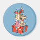 This absolutely darling illustration captures a moment of pure holiday joy! Cindy Lou Who, dressed sweetly in pink with her big red bow, is sitting happily atop a large, colorful Christmas present (red with a blue ribbon). Beside her sits her loyal friend, Max the Dog, looking cheerful and sporting his single reindeer antler! This heartwarming graphic perfectly celebrates friendship and the sweet excitement of Christmas morning.