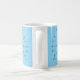 This mug features a classic Circle of Fifths diagram wrapped around a light blue ceramic body, showing all 12 major keys with their signatures in black notation on white segments. Key symbols like C (no sharps/flats), G (one sharp), and F (one flat) form the clockwise wheel, with staff previews for easy reading—perfect for quick reference during coffee breaks.