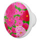 Keramisk knopp i en utförlig illustration av fuchsia och mjuk rosa krysanthemum på gröntens bakgrund