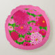Circle of Flowers, Fuchsia Rosa Chrysanthemums Rund Kudde