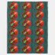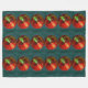CIRCLE RED Blanket A-Abstrakt i form av en röd glob med en mörk grönt bakgrundsbild på flerfärgade cirklar mellan ljus och mörk och FÄRG-grönt, och röd på en