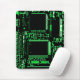 Modern konstruktion som har en nära anslutning till ett datorkretskort i grönt, svart och vitt. Mousepad med en utformning av anpassadet som gör att du kan anpassa dig till dina egna texter, bilder och idéer. Skapat med hjälp av ett originalfoto och digital teknik av Jess Perry.