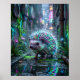 A charming circuit hedgehog explores a hidden futuristic alley garden, its rounded body covered in polished micro-armor and glowing fiber-optic quills. Cyan, magenta, lime, and electric blue highlights give this tiny creature playful premium energy. Neon moss, robotic flowers, wet concrete, puddle reflections, pipes, vents, and soft city light create a cozy urban sanctuary. This adorable cyber animal design blends cuteness with modern style, making it ideal for nurseries, bedrooms, offices, and thoughtful gifts for hedgehog lovers.