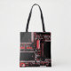 Modern konstruktion som har ett nära kretskort i rött, svart och vitt. Bag med ett anpassade som du kan anpassa med din egen text, bilder och dina idéer. Skapat med hjälp av ett originalfoto och digital teknik av Jess Perry.
