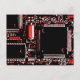 Modern design som har en röd och svart slutning av ett datorkretskort. Med ett vykort som är utformat så att du kan anpassa anpassadet med egen text, bilder och egna idéer. Skapat med hjälp av ett originalfoto och digital teknik av Jess Perry.
