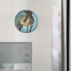 Svart och vit, rund, cirkelformad zebra-designmagnet.