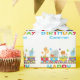 Denna berömvärda anpassningsbar cirkusdjurets födelsedag innehöll pappra inslag som zoo djur ut på en safari. Tåg innehåller en giraff, elefant, tiger och en söt hippo ovanför texten Birthday Boy skriven i orange, grönt, rött och blått färg. Anpassa med ditt barns namn för ett barn som har en roligt party.