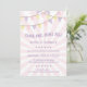 Den här söta cirkustematade inbjudan från barns födelsedag-partiet innehåller rosa, lila och buntning av gult, lila och en ljus rosa stjärna i bakgrunden.