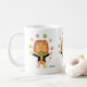 A fun mug for kids to drink their hot cocoa or cold chocolate milk . It features a cartoon lion juggling several balls over his head . Personalize it with a name .