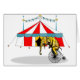 Circus Elephant som cyklar med röd och vit cirkus tält