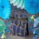 Vintage grym, störd cirkusfest föredrar rutor i accenter av blå och faux foil guld.
