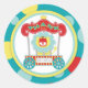 Tematekal för cirkus med starkt polka dots och en lejon inhägnad i en karnival bur.
