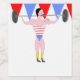 Charming, handdragen och färgad Circus Strong Man i en röd och vit, stripad väst, blått byxor och svarta och gult stövlar av sin toppen-humana styrka i ett rött, gult och blått Circus-temaparty