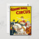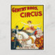 En reklamsida för Gentry Bros. Circus. Poster skildrar ett trippel som går över en halsduk som hålls av en clown och ringmästaren. Circa 1920.