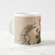 Vintage av en manlig cirkusutövare som står bland en lejon, en tiger, två varger och en leopard. Han håller en stor biet av nötköttsöverdrag med sin lämnat hand, omkring 1872