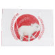 Vattenfärg på en söt liten spädgris, i profil och framskridande, inom en röd cirkel omgiven av rött och vitt bladfärgat grenar. Perfekt för gris, djur och natur-älskare eller för barn i alla åldrar, samt för sommargrillar eller födelsedagskalender för dem som föds under det kinesiska året om gris!