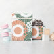 Denna papper har en utformning av cirklar som är dekorerade med linjer och cirklar som består av upprepade punkter i grönt och korall.