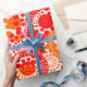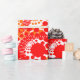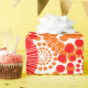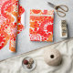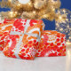 Detta papper har en utformning av cirklar som är dekorerade med linjer och cirklar som består av upprepande punkter i rött och orange.