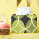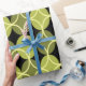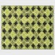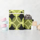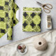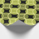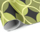 Detta papper har en modern utformning i mitten av århundradet av öppna cirklar på slutna cirklar i skuggor av grönt och gult på en svart fält. Det här kan vara bra för Fars dag gåva.