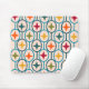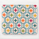 Den här musmattan har en modern design i mitten av århundradet av tealcirklar som är spända ihop med stjärnor i vardera ändan i färg.