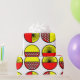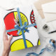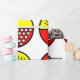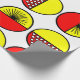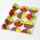 Detta papper har en modern utformning av halvcirklar i mitten av århundradet, vissa med stjärnsprängningar, vissa med små cirklar och vissa med bara fast form, i rött och gult.