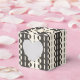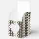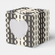 Cirklar och stygn på ränder i två nyanser av kräm och kol (nästan svart). Andra typer av presentlådor med denna design finns också tillgängliga i andra färger.