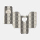 Cirklar och stygn på ränder i två nyanser av kräm och kol (nästan svart). Andra typer av presentlådor med denna design finns också tillgängliga i andra färger.