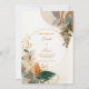 Bjud in dina gäster till en fest av förfinad organisk skönhet med denna fantastiska botaniska komposition. Designen visar ett sofistikerat samspel mellan djupt skoggrönt och bränt orange bladverk, vackert accentuerat av ömtåliga vita blomningar och intrikata botaniska detaljer i guld. Dessa element är graciöst arrangerade runt en skimrande cirkulär ram i guld, mot en varm, fläckig krämfärgad bakgrund med mjuka, jordnära taupe-former som ger en modern, lagrad djupdimension. Denna design ger en utsökt grund för en bröllopsinbjudan, vilket gör den till det främsta valet för en modern skogsceremoni, ett sofistikerat trädgårdsbröllop eller en elegant höstgalafest. Dessa motiv säkerställer att din brevp
