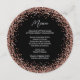 Ett cirkulärt gräns av Faux ro guld glitter mot ett anpassade med fast svart färg-bakgrund. En minimalistisk meny-textdesign för din speciella händelse eller bröllop. Faux glitter skriver ut som ett foto på de här rundmenyerna.