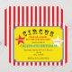 Cirkusrandig födelsedagsfestbiljett-inbjudan inbjudningar