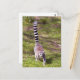 Citur (Lemur catta), framifrån, på gräs med svan i luft