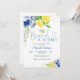Fira med stil med denna eleganta bröllopsdusch-inbjudan med citron och blommor. Med akvarell-citroner, citronskivor och ömtåliga blå och gula blommor accentuerade med gulddetaljer ger denna design en fräsch och glad ton till din speciella dag. Perfekt för brunches och festliga sammankomster, den kombinerar modern elegans med ett lekfullt citrontema. Anpassa med dina evenemangsuppgifter för att skapa en minnesvärd souvenir för gästerna.